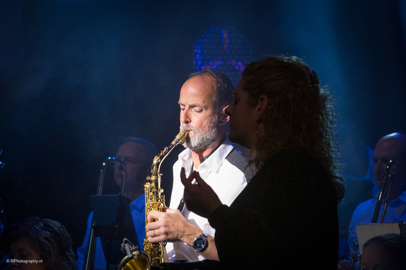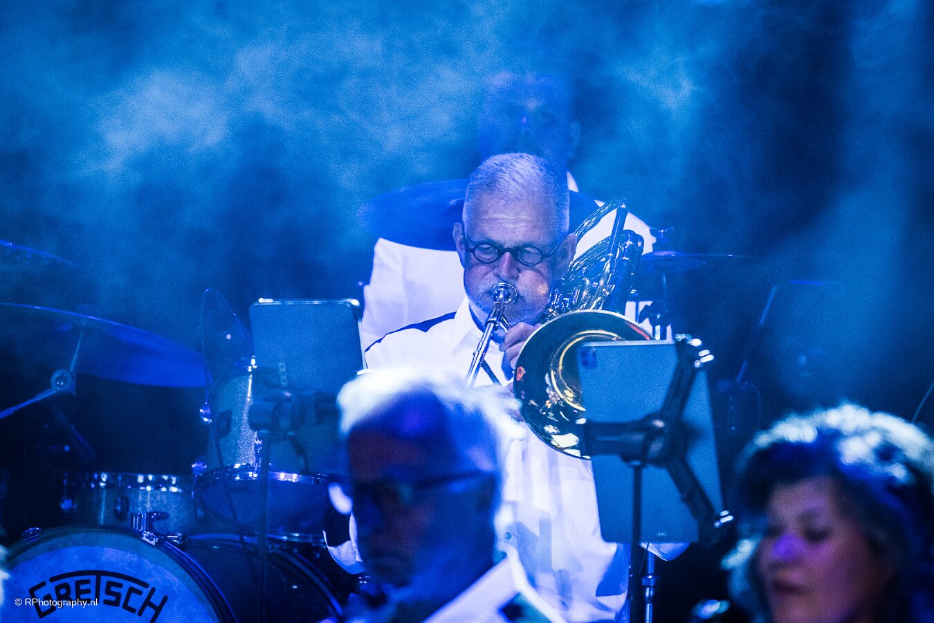 op de achtergrond